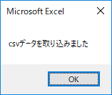 - Excelに戻り、「ダウンロードしたcsvファイルを取り込む」ボタンをクリックし、前記の手続きでダウンロードしたcsvファイルを選択します。